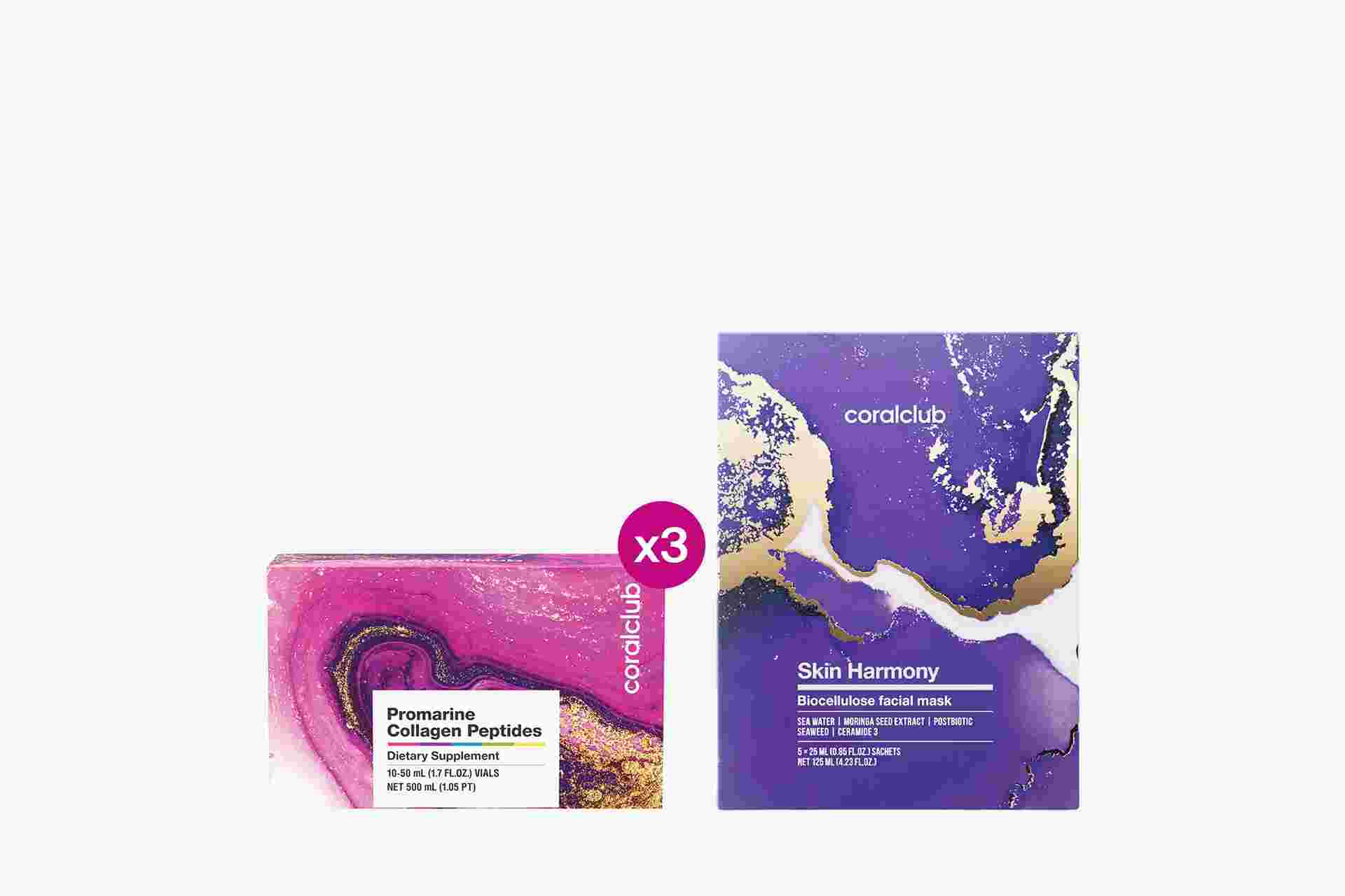 Promarine Collagen Peptides (1 mēneša kurss) & Skin Harmony Biocellulose Facial Mask (5 sašē paciņas)
