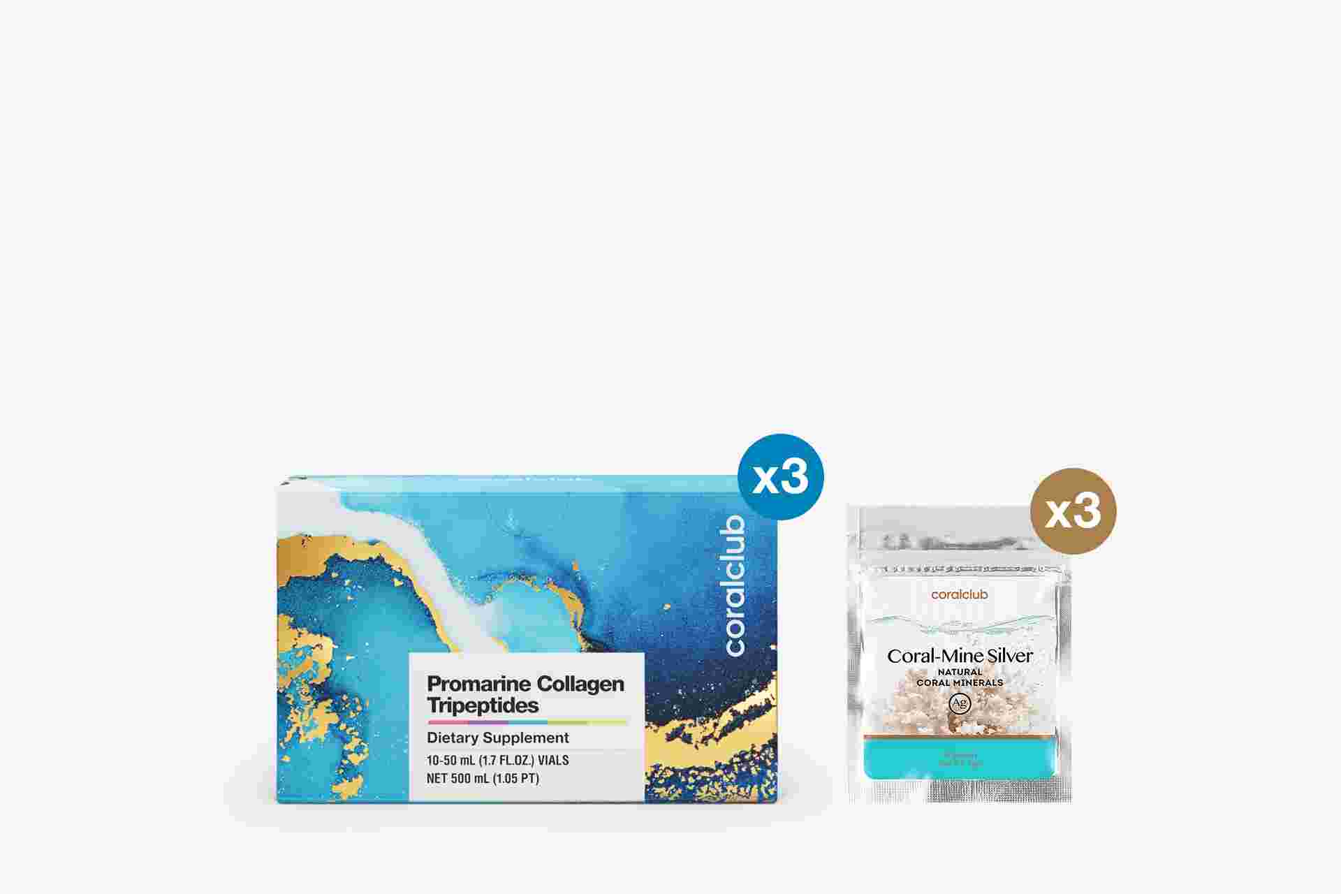 Jaunās paaudzes kolagēna peptīdi apvienojumā ar Coral-Mine ir kompleksa veselības aprūpe. Komplekts no diviem produktiem efektīvai aprūpei.